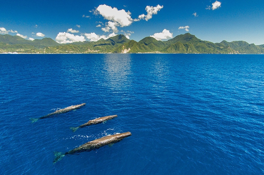 It’s a mountainous Caribbean country located in the Lesser Antilles. Dominica offers remarkable dive sites including dramatic walls, healthy reefs, drop offs, canyons and pinnacles. With a resident pod of sperm whales and many migrating pods of sperm whales, false killer whales and short finned pilot whales, encounters are possible year-round. Colorful and giant barrel sponges, healthy coral, seahorses, frogfish, squid, large crabs and lobsters are common sightings.